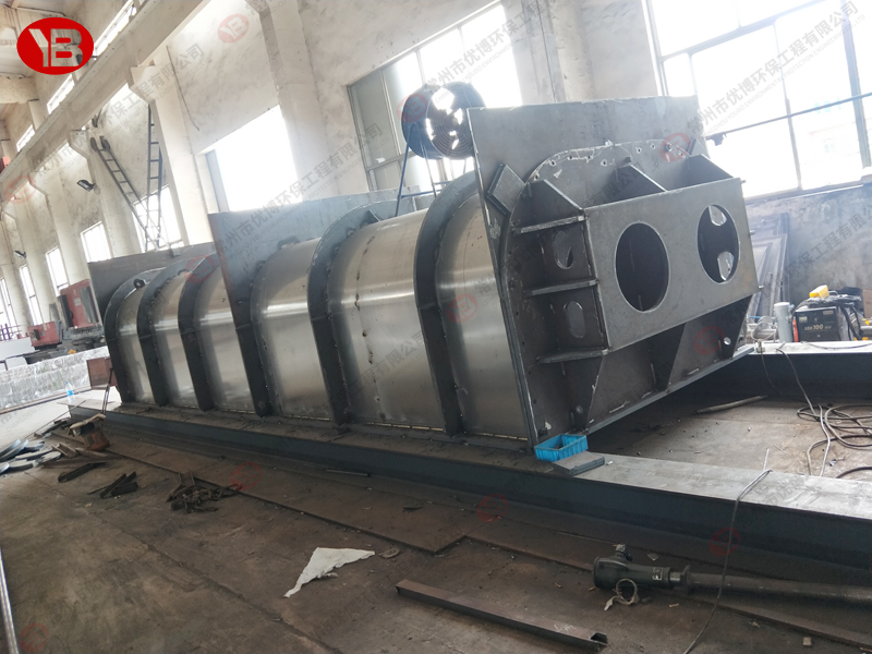 空心軸上密集排列著楔型中空漿葉,熱介質(zhì)經(jīng)空心軸流經(jīng)漿葉。單位有效容積內(nèi)傳熱面積很大,熱介質(zhì)溫度從-40℃到320℃,可以是水蒸汽,也可以是液體型:如熱水、導(dǎo)熱油等。間接傳導(dǎo)加熱,沒有攜帶空氣帶走熱量,熱量均用來(lái)加熱物料。熱量損失僅為通過(guò)器體保溫層向環(huán)境的散熱。楔型漿葉傳熱面具有自清潔功能。物料顆粒與楔型面的相對(duì)運(yùn)動(dòng)產(chǎn)生洗刷作用,能夠洗刷掉楔型面上附著物料,使運(yùn)轉(zhuǎn)中一直保持著清潔的傳熱面。漿葉干燥機(jī)的殼體為Ω型,殼體內(nèi)一般安排二到四根空心攪拌軸。殼體有密封端蓋與上蓋,防止物料粉塵外泄而充分發(fā)揮作用。