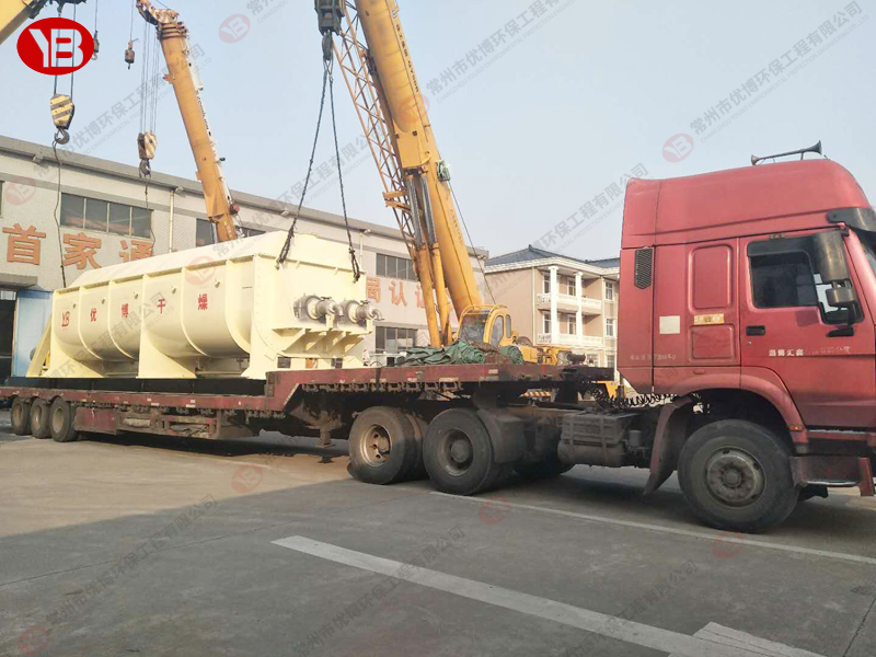 空心軸上密集排列著楔型中空漿葉,熱介質(zhì)經(jīng)空心軸流經(jīng)漿葉。單位有效容積內(nèi)傳熱面積很大,熱介質(zhì)溫度從-40℃到320℃,可以是水蒸汽,也可以是液體型:如熱水、導(dǎo)熱油等。間接傳導(dǎo)加熱,沒有攜帶空氣帶走熱量,熱量均用來加熱物料。熱量損失僅為通過器體保溫層向環(huán)境的散熱。楔型漿葉傳熱面具有自清潔功能。物料顆粒與楔型面的相對運動產(chǎn)生洗刷作用,能夠洗刷掉楔型面上附著物料,使運轉(zhuǎn)中一直保持著清潔的傳熱面。漿葉干燥機的殼體為Ω型,殼體內(nèi)一般安排二到四根空心攪拌軸。殼體有密封端蓋與上蓋,防止物料粉塵外泄而充分發(fā)揮作用。