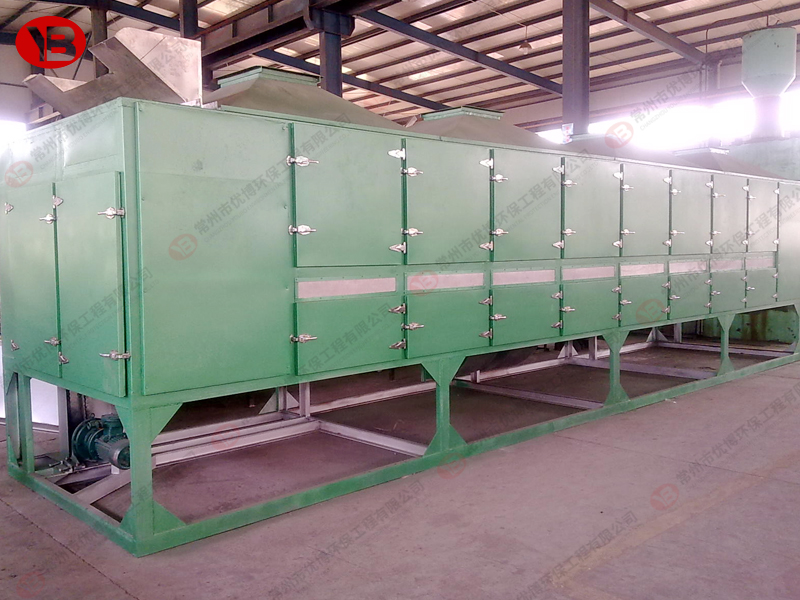 (2)多級帶式干燥機:多級帶干燥實質(zhì)上是由數(shù)臺單級帶干機串聯(lián)組成,其操作原理與單級帶干機相同。