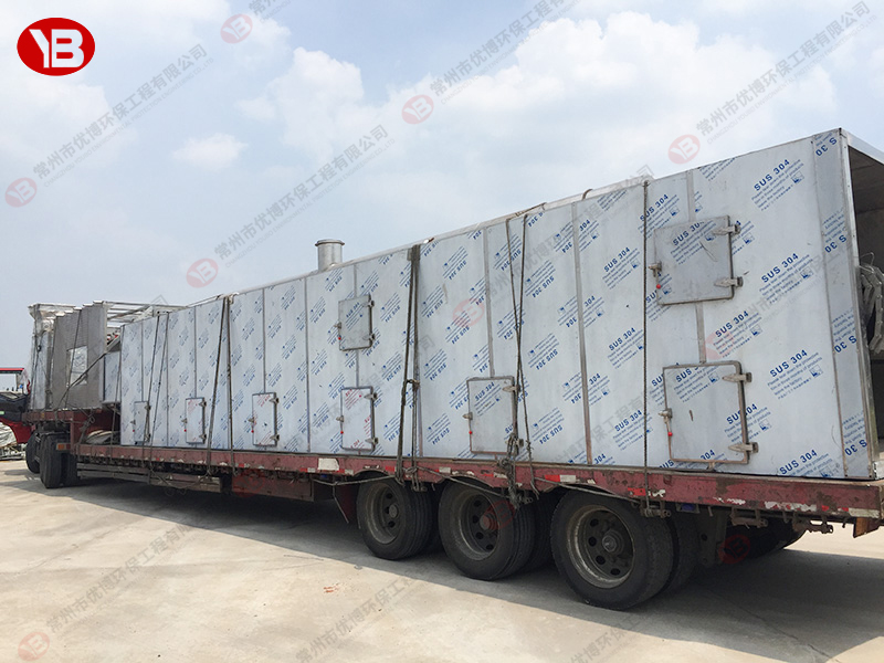 (4)沖擊式帶式干燥機:沖擊式帶干機適用于干燥織物、煙葉、基材的表面涂層及其他薄片狀物料。沖擊式帶機通常由兩條輸送帶組成。沖擊式帶機可分隔成單元段進行獨立控制。干燥介質(zhì)增濕后,部分排出,另部分返回摻入新鮮干燥介質(zhì)后再行循環(huán)。
