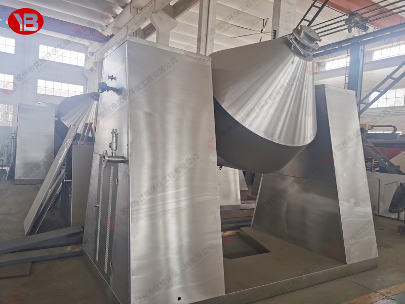 ◎在動力驅(qū)動下,罐體作緩慢旋轉(zhuǎn),罐內(nèi)物料不斷地混合,從而達(dá)到強化干燥的目的。
