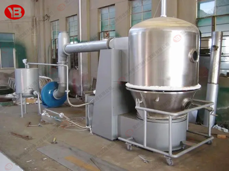 空氣經(jīng)加熱凈化后,由引風(fēng)機(jī)從下部導(dǎo)入,穿過料斗的孔洞板。在工作室內(nèi),經(jīng)攪拌和負(fù)壓作用形成流態(tài)化,水份快速蒸發(fā)后隨著排氣帶走,物料快速干燥。