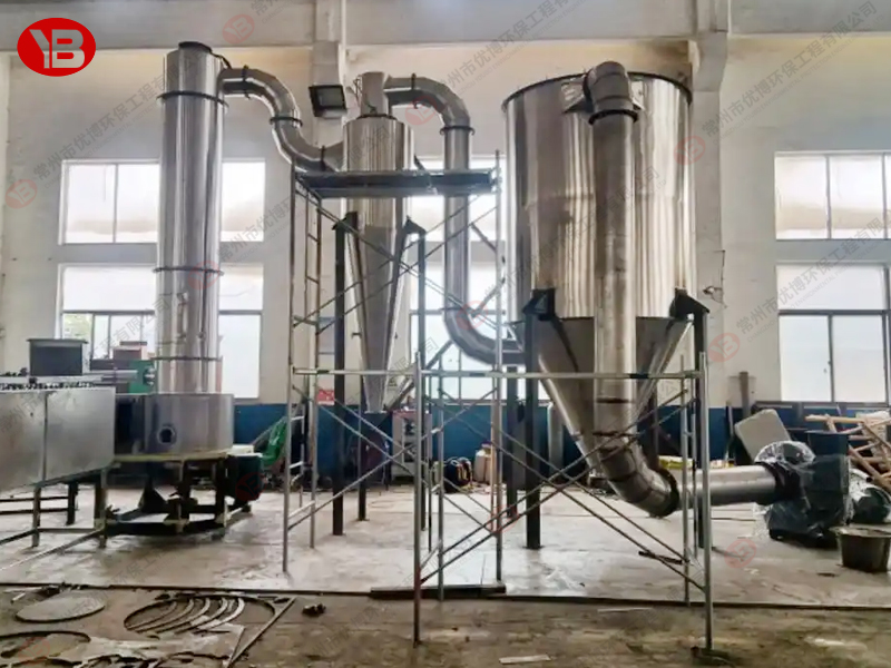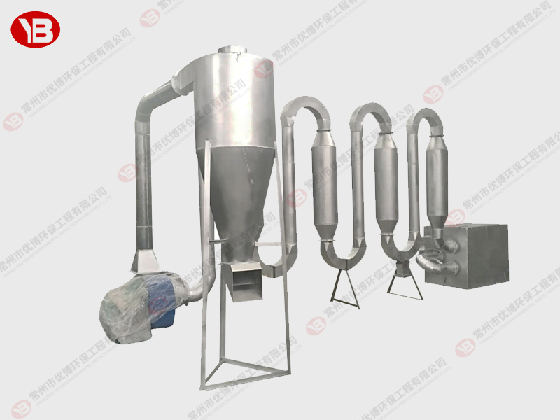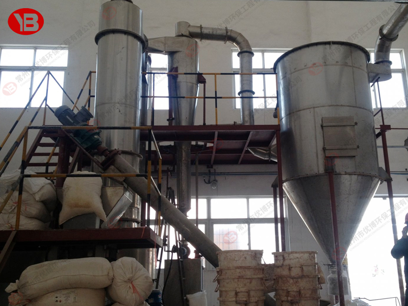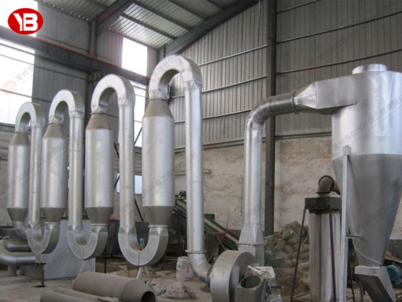 上述這類物料具有特殊性:比重輕,加料難,易燃,易爆。針對此情況,我公司技術部門開發(fā)研制的新型氣流干燥機,在原氣流干燥機的基礎上改進了加料形式,解決了“架橋”現(xiàn)象。創(chuàng)新改進了旋風分離器,解決了物料翻滾不出料的現(xiàn)象。系統(tǒng)集成,控制先進,超溫報警連鎖關閉熱源,有效解決了溫度過高引起的燃燒爆炸問題。