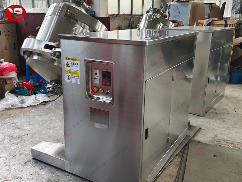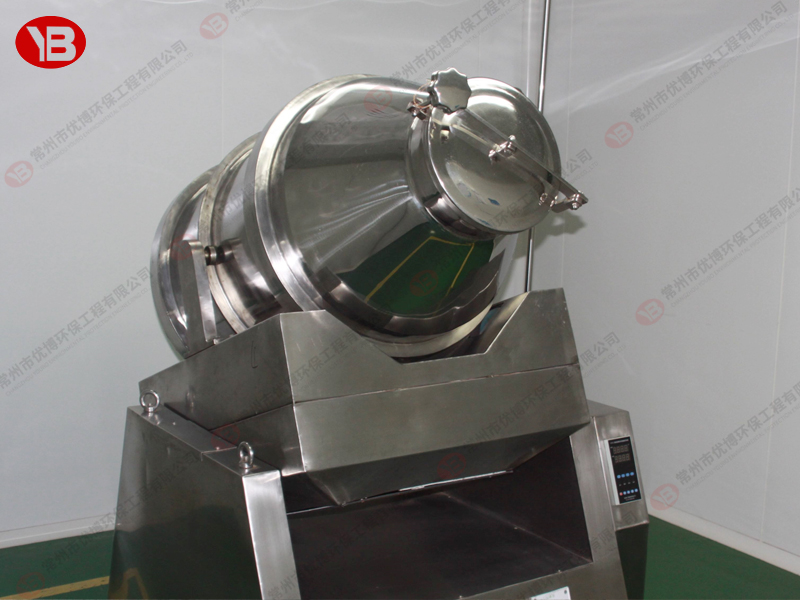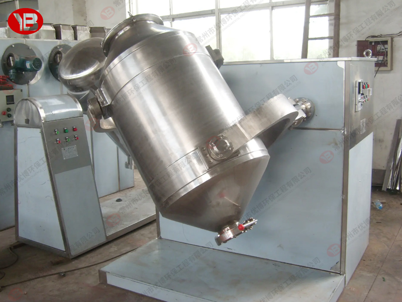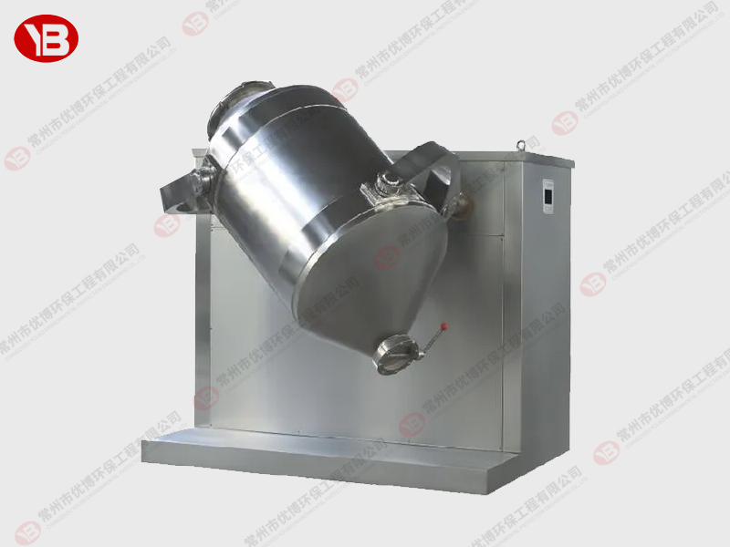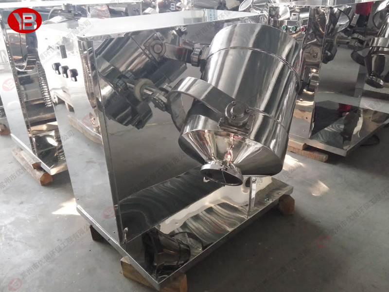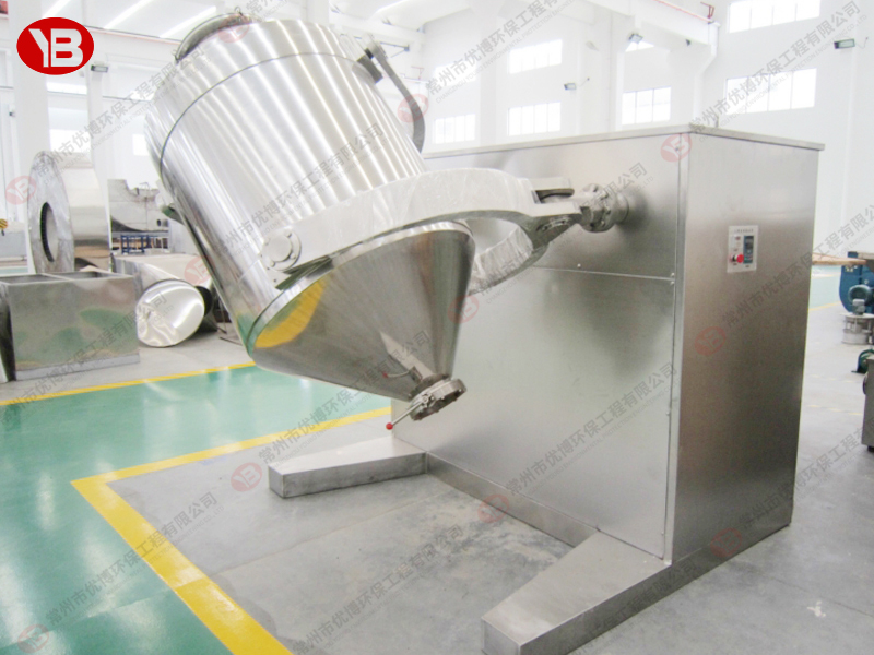 該機在運行中,由于混合桶體具有多方向運轉(zhuǎn)動作,使各種物料在混合過程中加速了流動和擴散作用,同時避免了一般混合機因離心力作用所產(chǎn)生的物料比重偏析和積聚現(xiàn)象,混合無死角,能有效確?;旌衔锪系募哑焚|(zhì)。