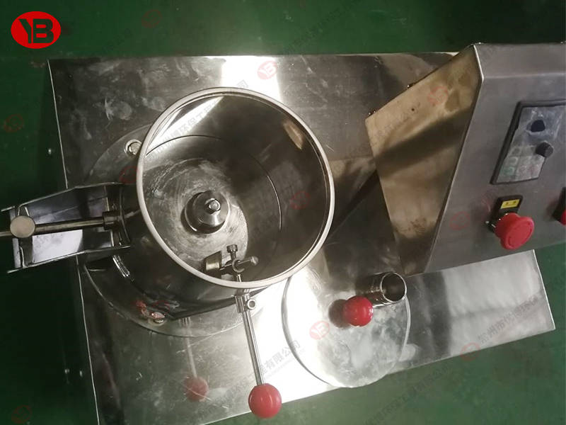 本機(jī)是通過設(shè)置旋轉(zhuǎn)離心盤、鼓風(fēng)機(jī)、氣動(dòng)噴槍,將濕顆粒制成美麗的球丸。將前道工序做成的濕顆粒投入旋轉(zhuǎn)離心盤內(nèi),啟動(dòng)鼓風(fēng)機(jī)后再將旋轉(zhuǎn)離心盤啟動(dòng),使?jié)耦w粒受到環(huán)隙空氣浮力、旋轉(zhuǎn)離心力、自身重力作用,呈環(huán)周繩股狀運(yùn)動(dòng),從而形成真球度極高的球丸。